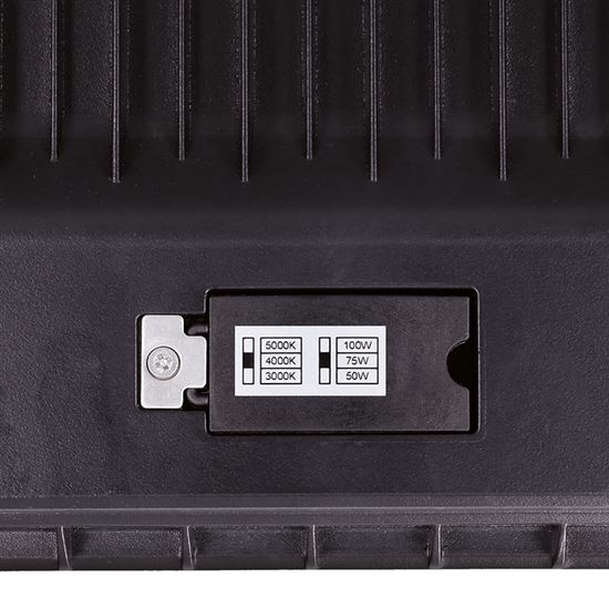 má prepínač, ktorým je možné navoliť teploty ( farby) svetla 3000K/4000K/5000K a zároveň prepínč výkonu na 50W, 70W a 100W.