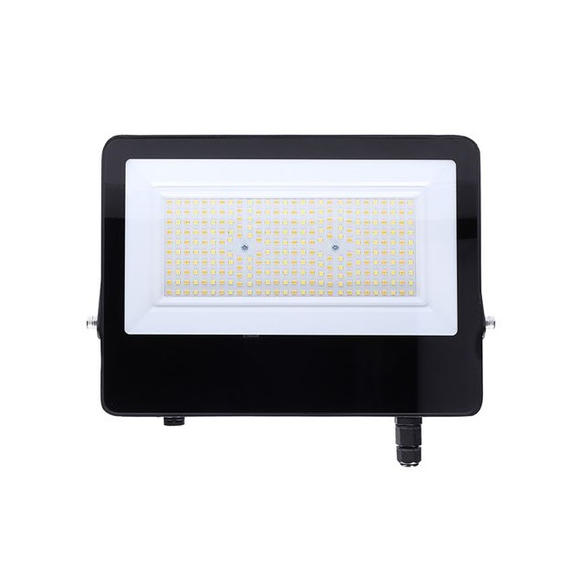 ČČierny LED reflektor TOP 100W CCT sa pomocou rýchlokonektoru pripája priamo na prívodný kábel 230V. Vďaka svetelnému toku až 14 000lm pri 100w výkone je ekvivalentom halogénového reflektora s výkonom 1000W. Svojou nízkou spotrebou zabezpečuje úsporu až o 85% pri životnosti LED čipov až 25 000 hodín. Reflektor je osadený SMD čipmi, ktoré vďaka uhlu svietenia 120° zabezpečia dobré rozloženie svetla v priestore.