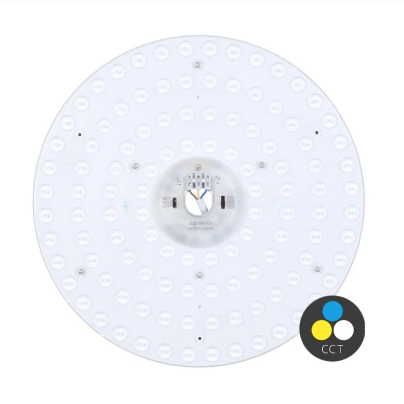 LED modul do stropníc s voliteľným výkonom 32-40-48W CCT je ideálnou náhradou klasickej žiarovky v stropniciach prezývaných aj UFO lampy. Na rozdiel od LED žiaroviek dokáže modul rozložiť svetlo v stropnici rovnomerne, tak aby svietila celá nie len jej časť. Sú preto vhodné aj do nástenných svietidiel. Svetelným výkonom 6200lm nahradí až 400W žiarovku. Vďaka integrovanému driveru je životnosť predĺžená až na 30 000 hodín.