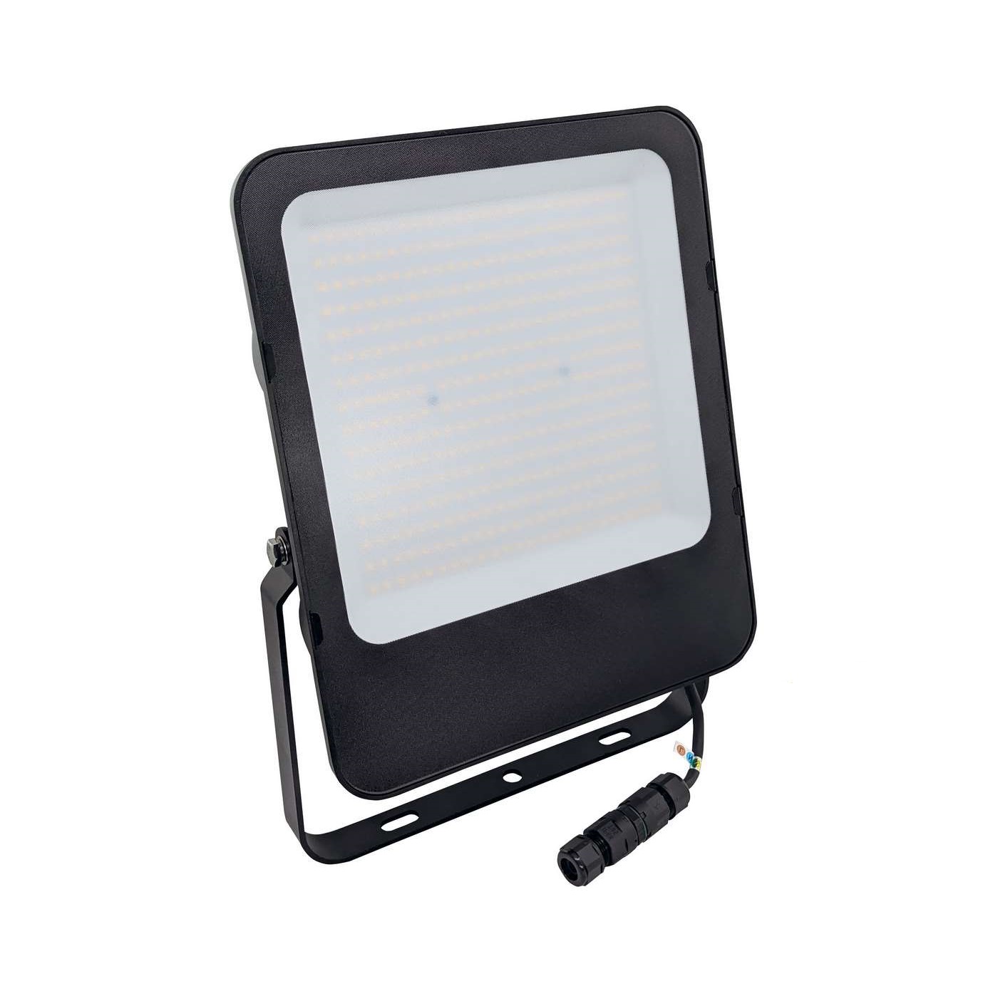 Profesionálny SMD LED reflektor 200W 4000K – záruka 5 rokov sa pomocou 3-žilového prívodného káblu napája priamo na prívod 230V. Vďaka svetelnému toku až 30 000lm pri 200w výkone je ekvivalentom halogénového reflektora s výkonom 2000W. Svojou nízkou spotrebou zabezpečuje úsporu až o 85% pri životnosti LED čipov až 30 000 hodín. Reflektor je osadený čipmi SMD, ktoré vďaka uhlu svietenia 120° zabezpečia rovnomerné rozloženie svetla v priestore.
